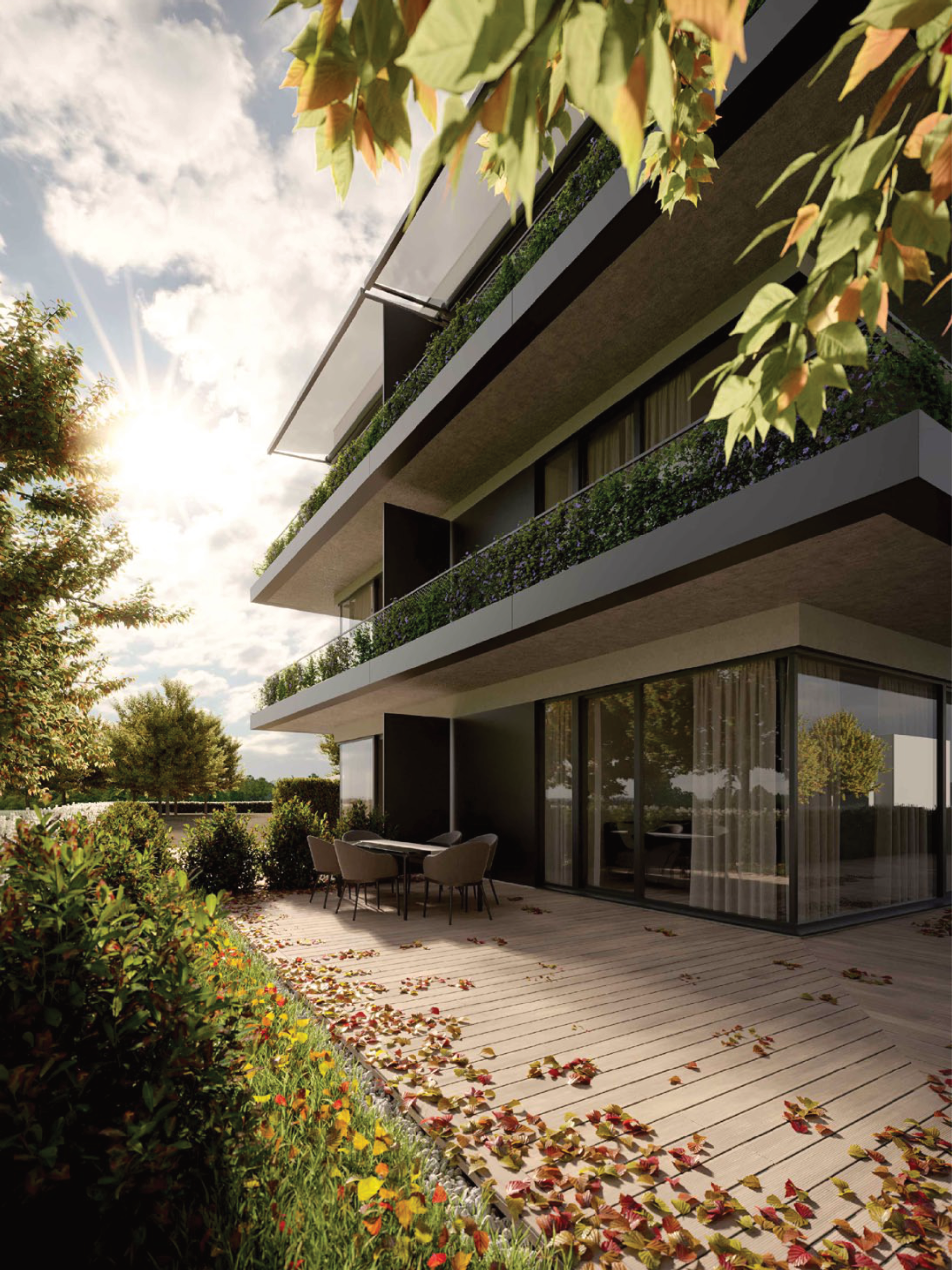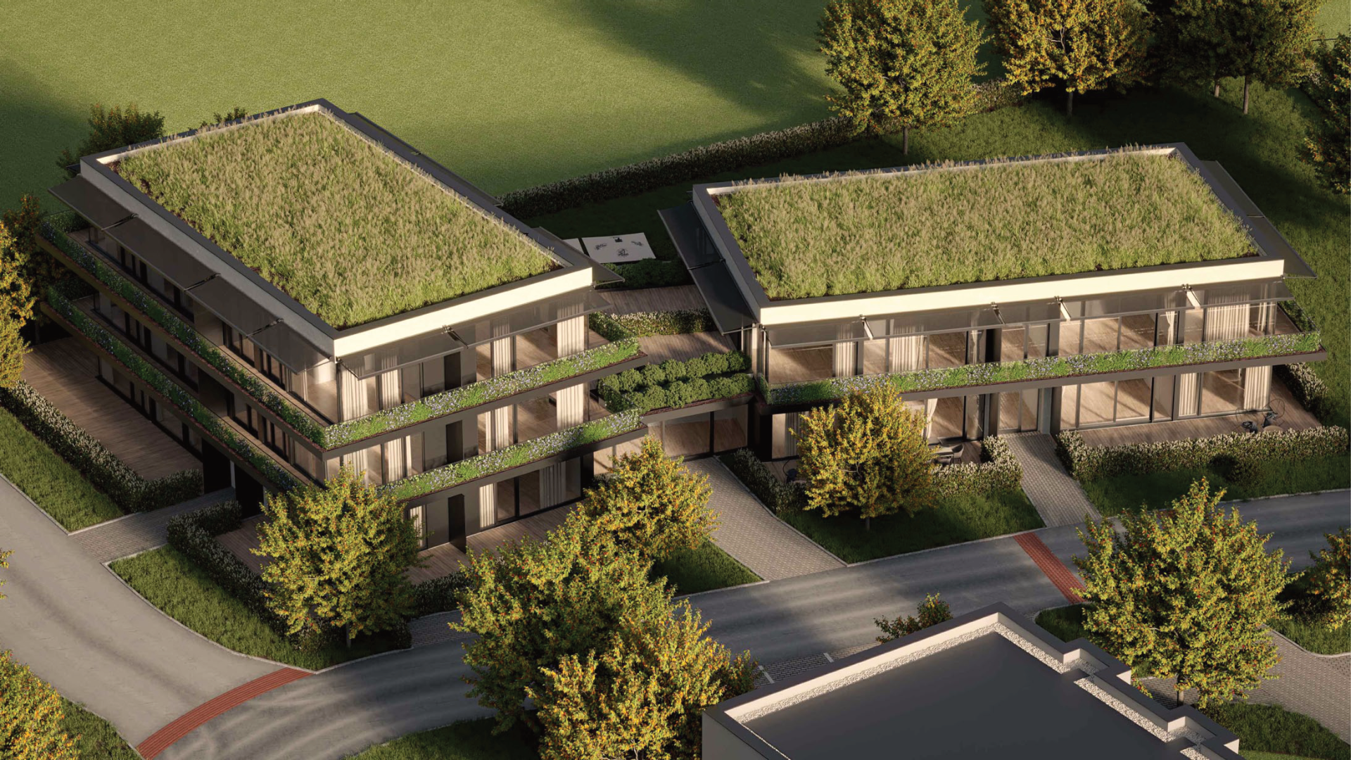 Polyfunkční dům má plochou vegetační střechu s extenzivní zelení, která má nejen okrasný účel, ale funguje také jako tepelná izolace a chrání horní byty před nadměrným ohříváním v letních měsících. Součástí stavby je i 12 parkovacích stání, z toho 1 stání pro osoby se sníženou pohyblivostí.