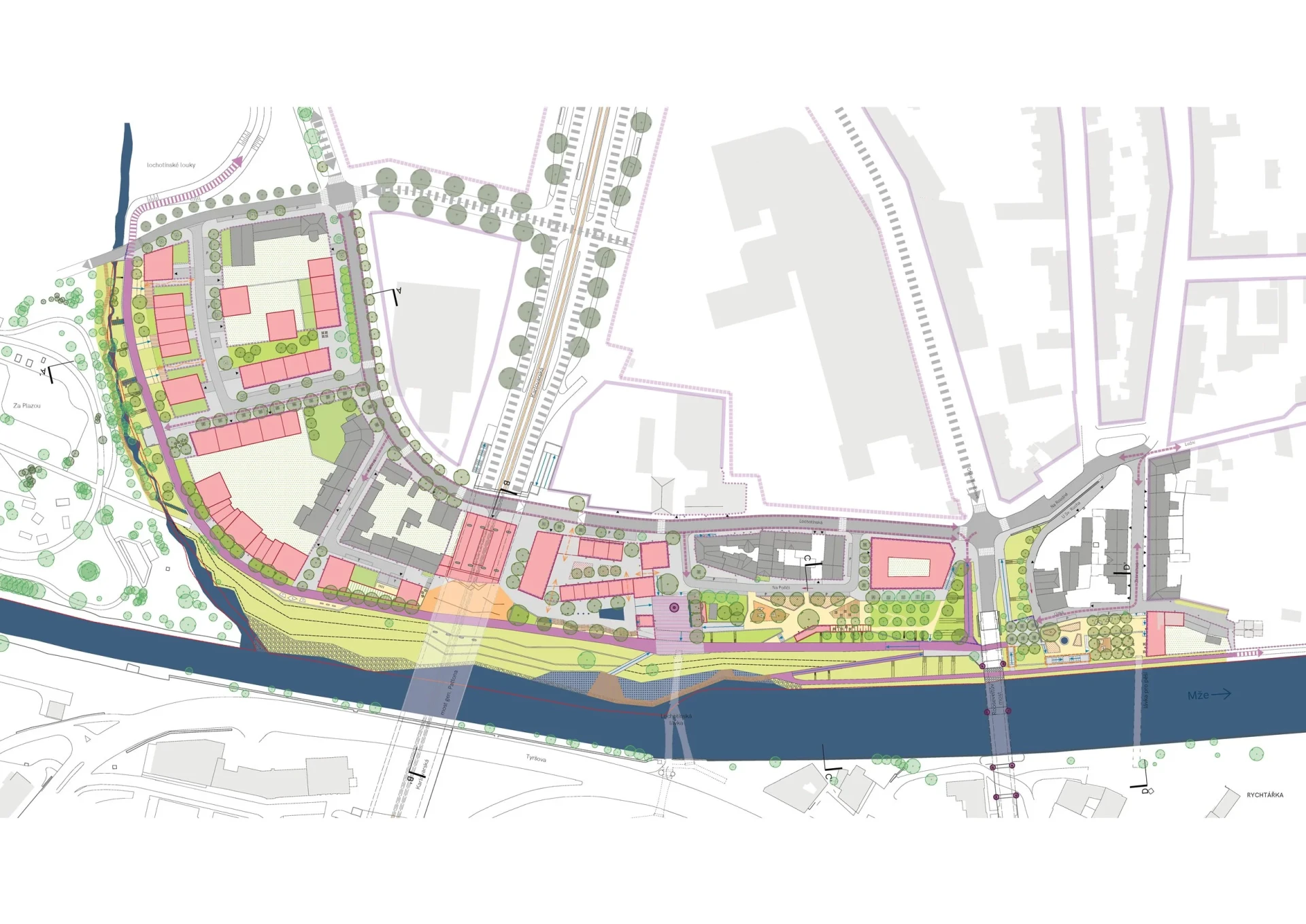 V roce 2022 Ateliér k světu., Rehwaldt Landscape Architects a VRV a. s. zpracovali studii, která navrhuje komplexní revitalizaci tohoto významného prostoru. Spojuje krajinářský návrh poříčního parku a navazujících veřejných prostranství. Podstatnou složkou návrhu je částečného obnovení přirozeného vodního toku a protipovodňové opatření integrované do veřejného prostranství. Koncept návrhu vznikal v součinnosti s veřejností, která v rámci veřejného workshopu sdělila své připomínky a ty byly v maximální možné míře zapracované do finální podoby.