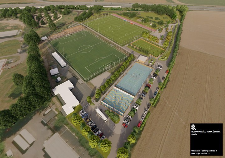 Stávající sportovní areál TJ Sokol Černice bude rozšířen o nové části. Vznikne tady fotbalové hřiště s umělým trávníkem, víceúčelové hřiště s polyuretanovým povrchem a dětské hřiště.